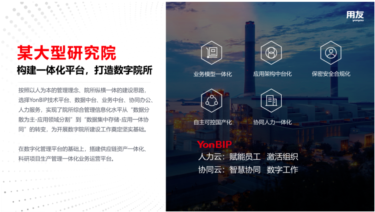 这是一个大型的研究院,有一万多人。他们提出要打造数字研究院,这就需要新一代数字技术的底座平台,我们给它提供了这么一个底座平台,研究院所有新的应用都在这个底座平台上构建。