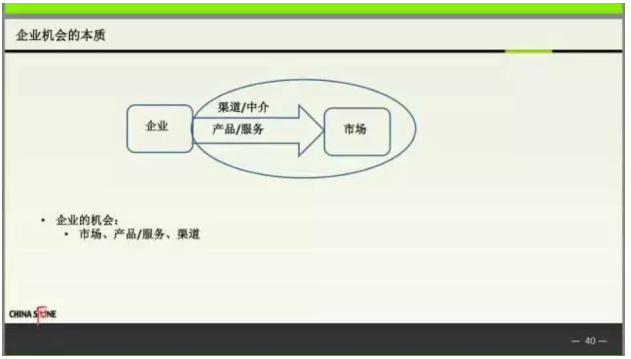企业机会的本质,是产品/服务、渠道、市场三个环节都能打通。