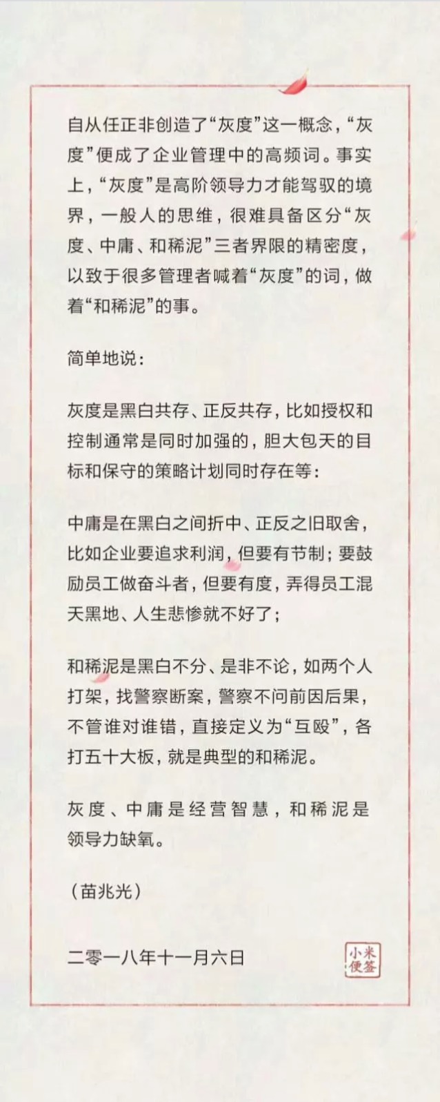 看完任正非接受董倩的访谈,有两点感受:1.说华为是中国企业管理的教科书,一点都不为过;2.任老爷子在经营华为中所获得的巅峰体验,定然是美妙极了。