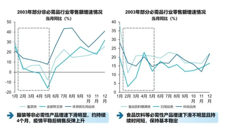虽然有研究指出2003年虽然受到“非典”的影响,但全年的社会消费品零售总额仍在全年保持了稳定的增长,并由此对本次疫情的影响持中性态度。