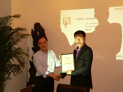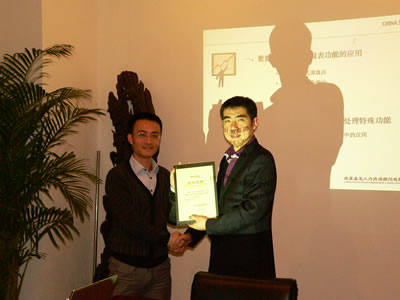 最后,孙总向全怀周先生和王俊先生分别颁发了公司特别制作的讲师授课证书和奖金奖励,此次培训在热烈气氛中圆满落下帷幕。