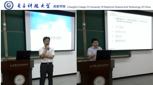 2014年7月9日,苗兆光、夏惊鸣老师应南充市经济和信息委员会邀请,在电子科技大学成都学院“论商o问道”论坛分别作了《混沌时代,成长型企业转型升级之道》、《突破成长瓶颈——商业模式的思考》的专题演讲,两位老师用自己多年来在企业管理项目中积累的事例与经验,向同学们开展了生动的演讲: