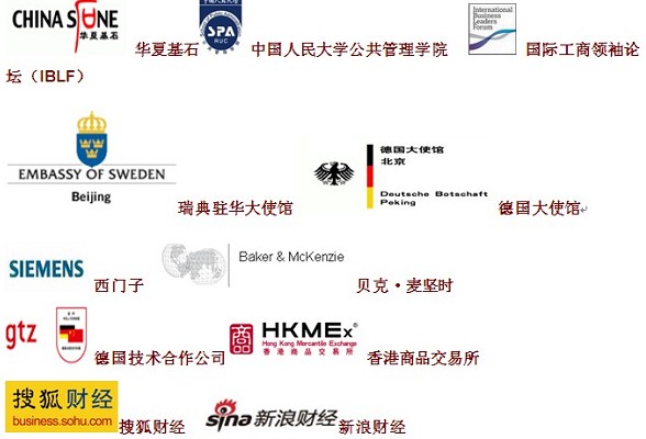 参与单位:科技部,商务部,瑞典大使馆,Siemens 西门子,Baker & McKenzie 贝克o麦坚时,Shearman & Sterling 谢尔曼o斯特灵,中石油,中石化,中国移动,中国联通,大唐电信,中国银行,中国工商银行,兴业银行,中国国际航空,深圳航空,南方航空,国家电网,中钢集团,中国远洋集团,中国新兴集团,首创集团,首旅股份,天津泰达投资控股,新奥集团,金风科技,华坚集团,五峰集团,歌尔声学,中国五矿, Siemens 西门子,Shell 英荷壳牌,Pfizer 辉瑞制药,PricewaterhouseCoopers 普华永道,BHP Billiton 必和必拓,Nike,Rio Tinto 力拓等。