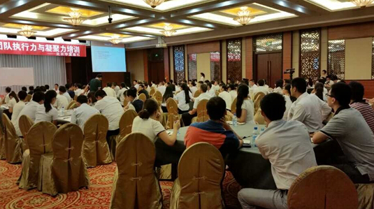 本次培训历时一天,参训人员分17个小组,每组围坐一桌,并为自己的团队起名。培训在热烈的掌声中拉开了帷幕,涂老师的培训主要围绕“房地产企业的特点与管理难题”、“什么是执行力”、“房企执行力差的表现与原因分析”、“打造房地产企业高效执行力”和“打造房地产企业凝聚力”五个方面进行了讲解。涂老师在讲课中通过房地产标杆企业和国内外知名企业的经典案例,以图表、数据等形式,分析了房地产企业执行力存在问题的原因,深入浅出地讲解了管理者的角色认知和打造执行力的途径等内容。