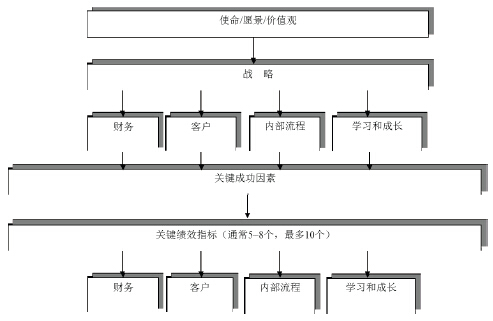 平衡计分卡是20 世纪90 年代初由哈佛商学院的罗伯特o卡普兰(Robert Kaplan) 和诺兰诺顿研究所创始人之一戴维o诺顿(David Norton) 开发出来的一种绩效评价体系,“它将企业战略目标逐层分解转化为各种具体的相互平衡的绩效考核指标体系,并对这些指标的实现状况进行不同时段的考核,从而为企业战略目标的完成建立起可靠的执行基础”。