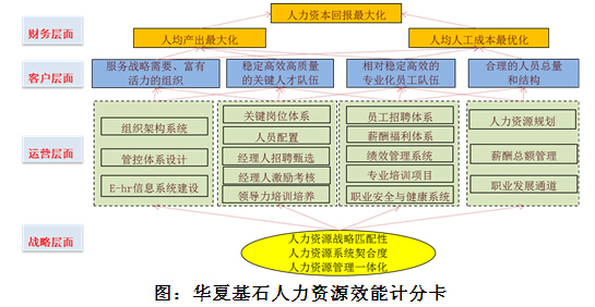 人力资源效能计分卡以提升人力资源回报率为核心,来说明人力资源管理在战略、运营、客户、财务四个维度上如何形成一个系统的有机体。该模型通过建立起战略和执行过程中的关联路径,方便组织及时发现、分析和监控人力资源管理过程中出现的效能问题。该模型的核心思想是企业应建立基于战略匹配、系统契合、一体化顺畅的人力资源系统,通过人力资源各个功能模块的作用发挥与协调配合,以提升组织与员工的满意度,从而推动财务目标的达成。该模型隐含的一个假设是财务收益与战略、运营、客户三个维度的高度关联性,如果将人力资源效能比作一棵大树,只有根深(高度的战略性)、枝壮(高效的运营体系)、叶茂(满意的客户),才能结出丰硕的果实(财务绩效)。