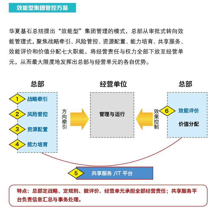 ★集团管控的关键是进行平台与赋能体系建设,坚持打造平台化赋能式集团总部,强化平台赋能,向业务部门提供源源不断的动力。/p