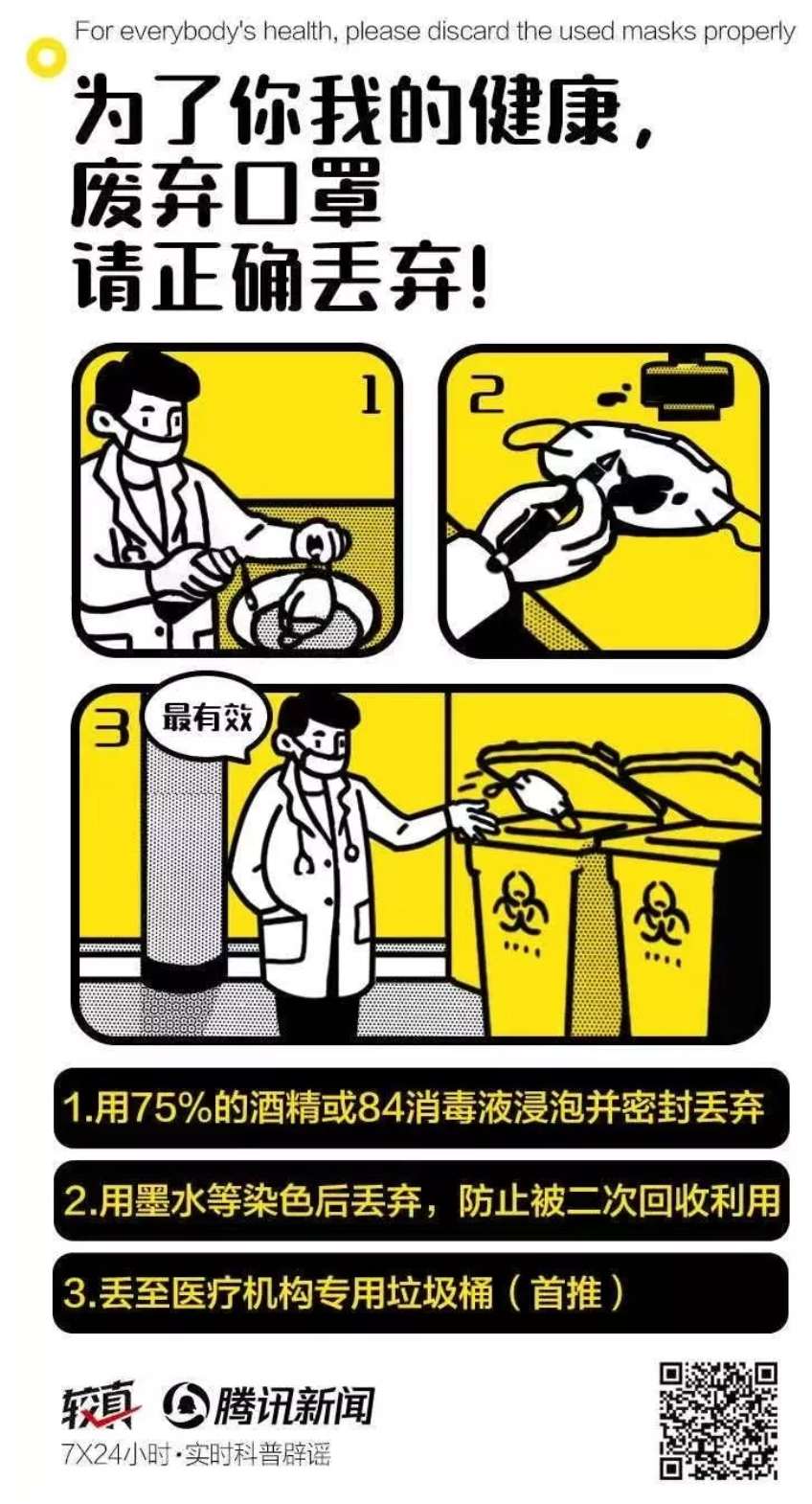 编注:此处口罩部分为作者举例说明如何为最极端情况做准备,但在不到万不得已的情况下,希望读者安全处理用过的口罩,如下图: