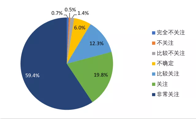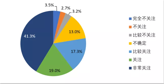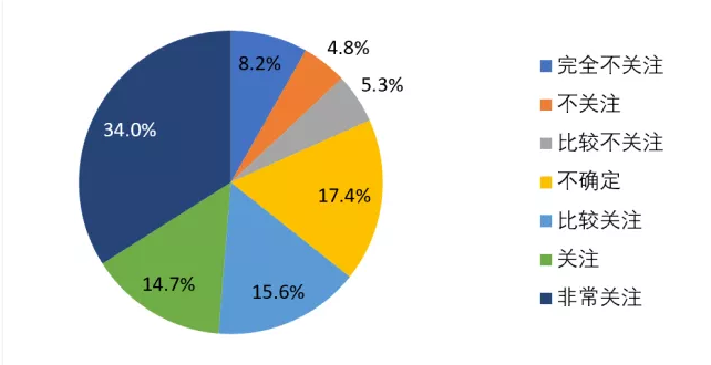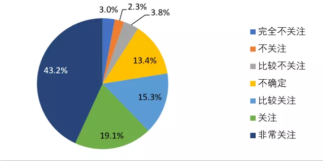 随着对疫情的控制,全国各大企业陆续复工复产。如图17所示,调查结果显示,从业人员关于上班后工作时间调整较为关注。其中,非常关注(43.2%),关注(19.1%),比较关注(4%)。