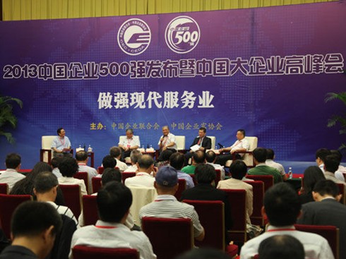 “2013中国企业500强发布暨中国大企业高峰会”于8月31日-9月1日在云南省昆明市举行。本次会议由中国企业联合会、中国企业家协会主办,云南省人民政府承办,昆明市人民政府协办。本届峰会以“做强与引领:经济升级背景下的大企业发展”为主题。