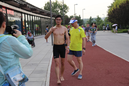 五公里个人赛由曹朝霞老师亲自带队参赛,比赛第一名由OB欧宝体育队的队长—“赤脚僧”何文辉斩获,第二名是恒美瑞的庞炳义,两位选手为了此次比赛都进行了精心备战,何文辉每早晨跑5公里,庞炳义不仅坚持训练,而且每周五的晨会还动员队友们积极训练。赛后两位选手击掌庆贺各自跑出的成绩,何文辉光脚跑了5公里最快的速度,庞炳义5公里总耗时也比平时足足快了一分多钟。