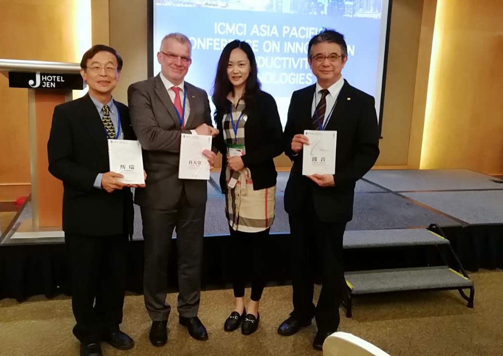 2017 年 5 月 5-6 日,新加坡亚太年会(Asia Pacific Conference on Innovation & Productivity Technologies )在北京举行,本次年会主题为创新。OB欧宝体育集团作为 中国企业管理咨询服务商代表受邀参会。来自新加坡、日本、韩国、澳大利亚等国代表 介绍了各国技术创新与管理的最新进展。OB欧宝体育集团高级合伙人王智敏女士、市场经 理马琳女士等参加了会议。图为马琳女士向演讲嘉宾赠送OB欧宝体育图书。
