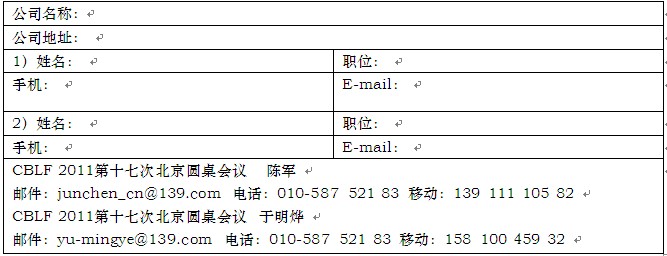 请填写本表并传真至010-58752787或 邮件至:junchen_cn@139.com; yu-mingye@139.com